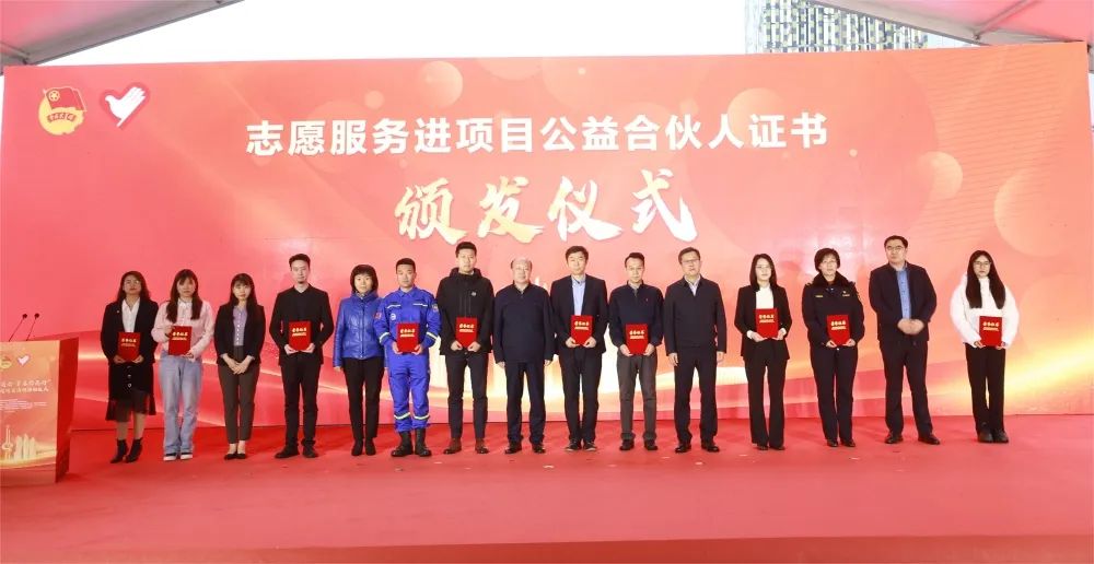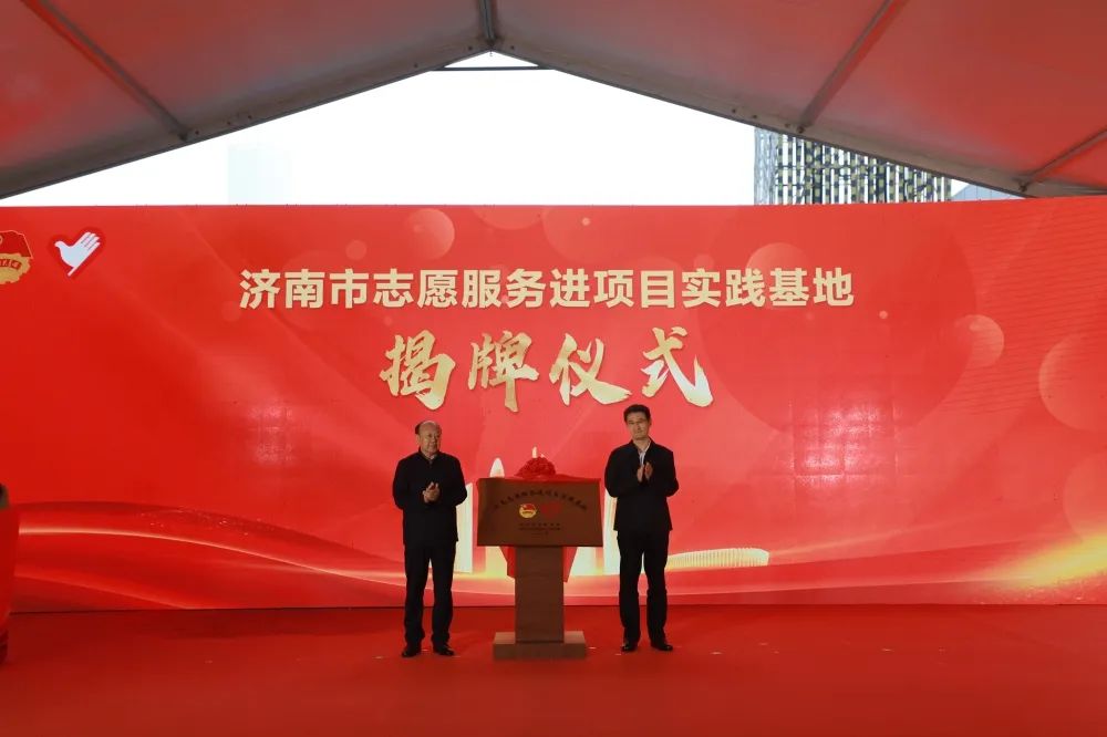 活動(dòng)中,賈文、孫文國(guó)共同為濟(jì)南市志愿服務(wù)進(jìn)項(xiàng)目實(shí)踐基地揭牌;出席活動(dòng)領(lǐng)導(dǎo)同志共同為工友代表發(fā)放慰問(wèn)品與“小桔燈”愛(ài)心公益書(shū)籍,向參加活動(dòng)志愿者組織代表頒發(fā)公益合伙人證書(shū)并向各青年志愿服務(wù)隊(duì)授旗。