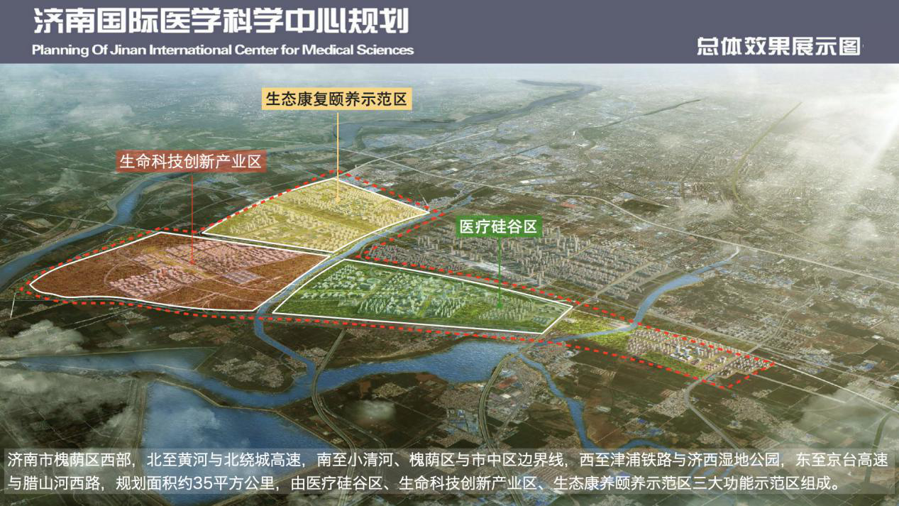濟(jì)南國(guó)際醫(yī)學(xué)科學(xué)中心位于濟(jì)南市槐蔭區(qū),規(guī)劃面積約35 平方公里,是山東省政府主導(dǎo)、濟(jì)南市政府具體實(shí)施的重大健康產(chǎn)業(yè)項(xiàng)目,是省市貫徹落實(shí)健康中國(guó)戰(zhàn)略的重大舉措,是全市新舊動(dòng)能轉(zhuǎn)換、黃河流域生態(tài)保護(hù)和高質(zhì)量發(fā)展的標(biāo)志項(xiàng)目。